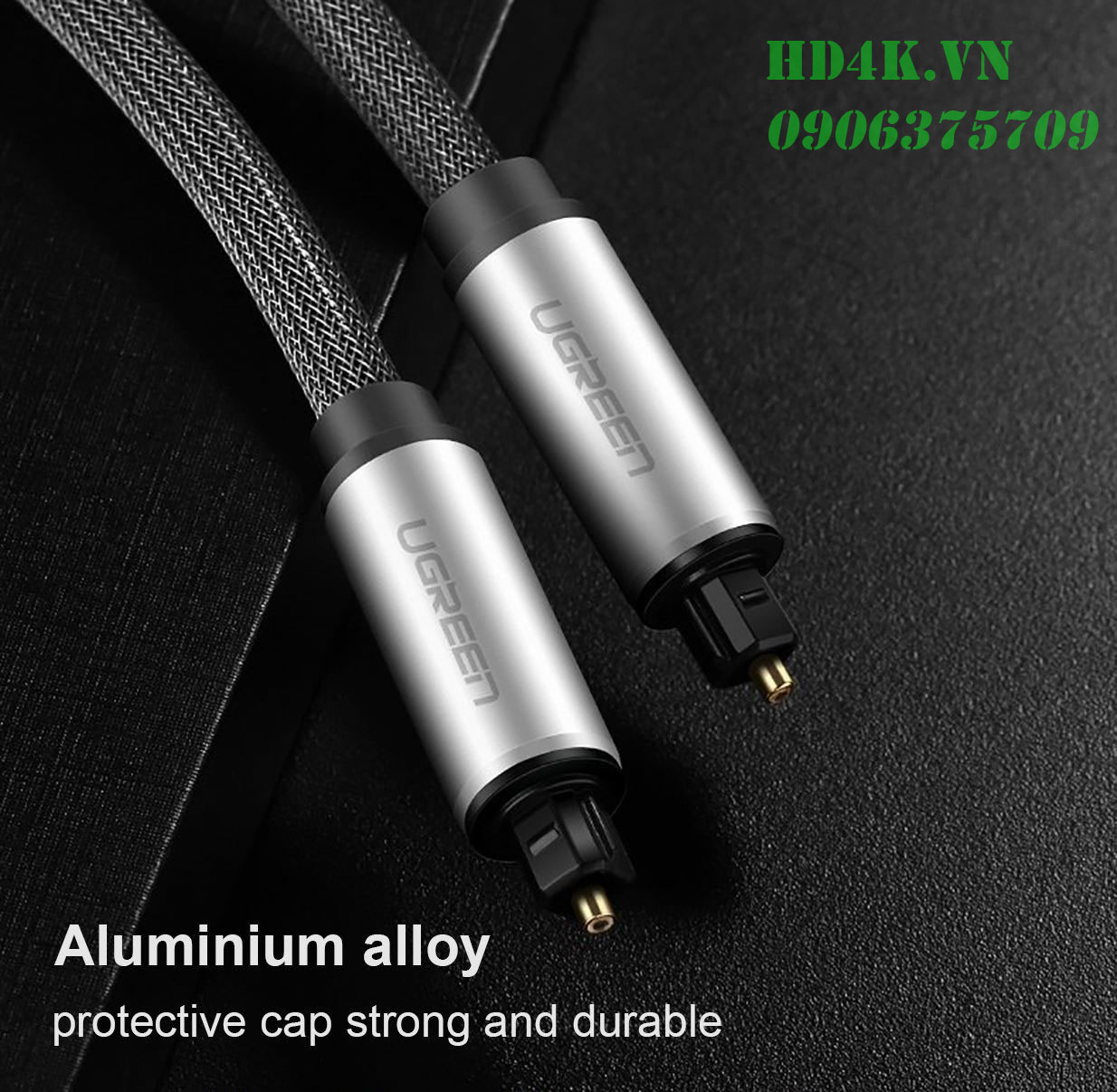 - Dây cáp quang Optical Ugreen dạng lưới, đầu cáp quang được bảo vệ bằng vỏ nhôm chắc chắn.