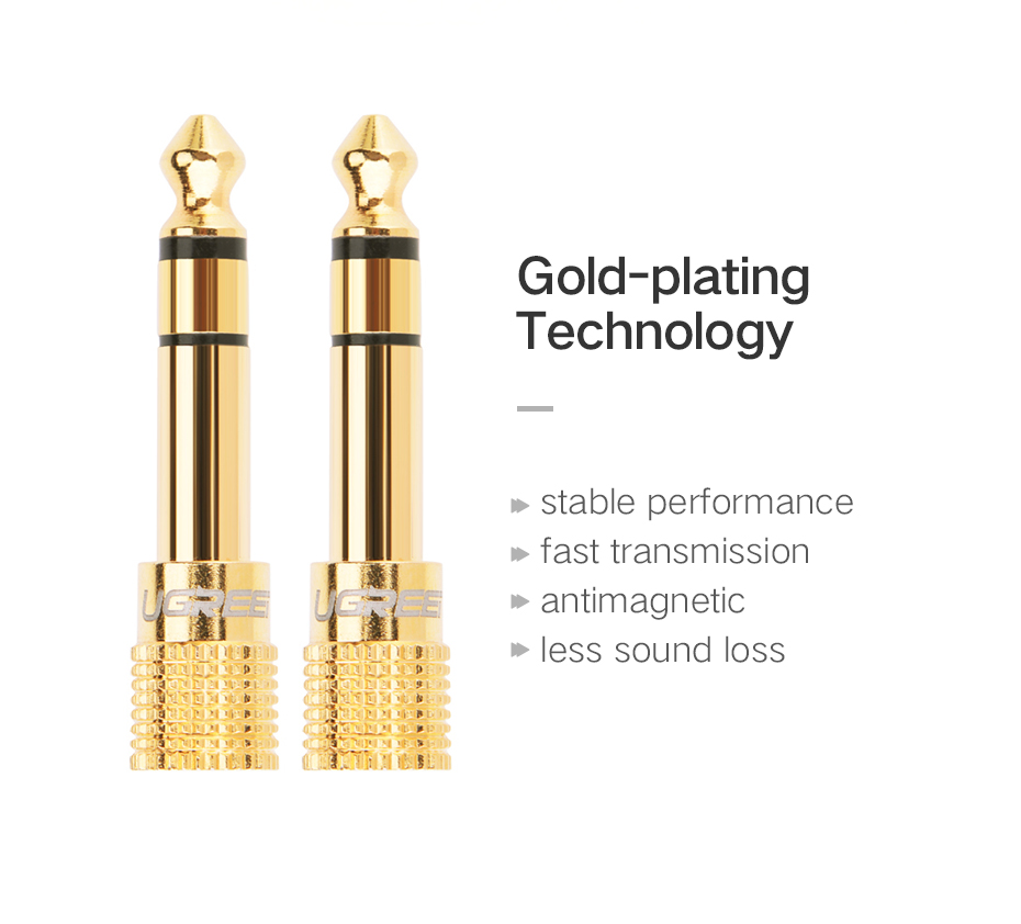 - Đầu chuyển 6.5mm to 3.5mm Ugreen 20503 sử dụng kết nối điện thoại, máy tính bảng, iPod, Mp3 Player, tai nghe chuẩn 3.5mm với Âm ly, Mixing Console, Mixer, home theater devices, amplifiers or av receiver...