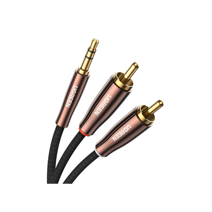 - Cáp âm thanh 3.5mm ra 2 RCA dài 5M cao cấp Ugreen 80849, được xây dựng với đầu nối che chắn kép và lõi đồng mạ thiếc, cáp UGREEN 2 RCA đến 3.5mm sẽ mang đến cho bạn chất lượng âm thanh hoàn toàn tinh khiết, sạch sẽ, không bị nhiễu. Chỉ cần tận hưởng trải nghiệm âm thanh cao cấp với bộ điều hợp âm thanh nổi truyền liên tục