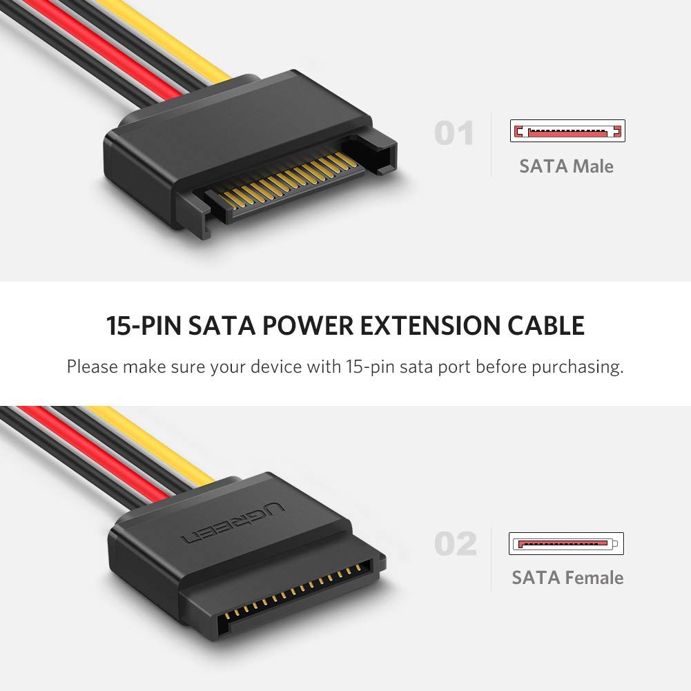 - Cáp Sata 15Pin nối dài Ugreen 50718 được sử dụng để mở rộng nguồn cấp SATA, kết nối nguồn điện máy tính với ổ cứng Serial ATA, SSD, ổ đĩa quang, đầu ghi DVDB và thẻ PCI. Với cáp mở rộng SATA 3 Gói này, bạn có thể kết nối trực tiếp hoặc mở rộng cáp SATA hiện có.