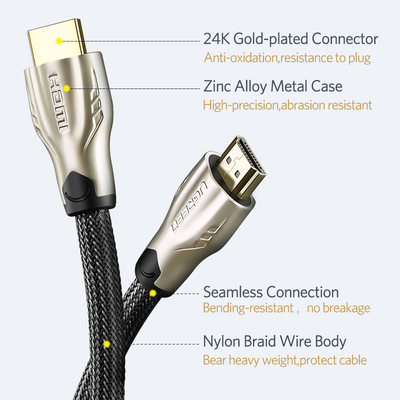 - Cáp HDMI chính hãng Ugreen - Hỗ trợ 3D - Định nghĩa giao thức đầu vào / đầu ra cho các định dạng video lớn 3D, mở đường cho việc chơi game 3D thực và các ứng dụng rạp hát tại nhà 3D.