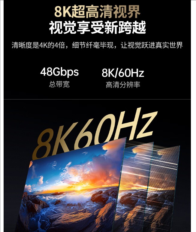 - Hỗ trợ độ phân giải cao (8K @ 60Hz), nên thích hợp cho TV, màn hình cao cấp, máy chơi game thế hệ mới, đầu phát 8K.