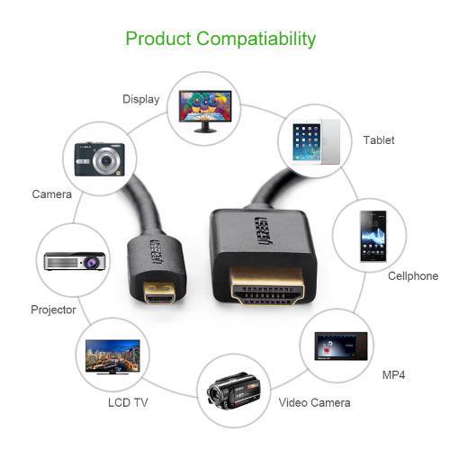 - Cáp chuyển đổi Micro HDMI to HDMI Ugreen 30104 cho phép bạn chuyển tải hình ảnh và âm thanh từ cổng Micro HDMI ra màn hình Tivi LCD hoặc màn chiếu với độ phân giải cao full HD 1080P.
