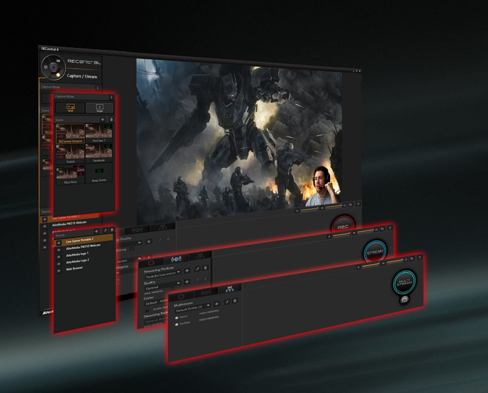 - Đầu ghi hình và livestream AverMedia GC551, tương thích hoàn toàn RECentral 4 mới nhất, có một kho giao diện có sẵn để người dùng tùy biến, còn không ưng thì đơn giản là kéo thả. Điểm mạnh lớn nhất của phần mềm mới này chính là giao diện đơn giản hơn với khả năng tùy biến cao và khả năng tương thích với các phần cứng khác tốt hơn, đặc biệt là camera và micro gắn thêm.