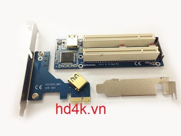 - Card chuyển đổi PCI-E 1X sang 2 PCI thường. Giúp bạn mở rộng thêm 2 cổng PCI cho máy tính.