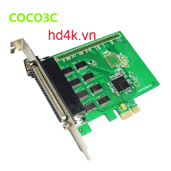- Card chuyển PCI-E to 8 com RS232 được dùng để kết nối máy tính với các thiết bị điều khiển như các máy thiết bị y tế, các thiết bị tự động hóa, các case ATM, các máy thiết bị siêu thị...