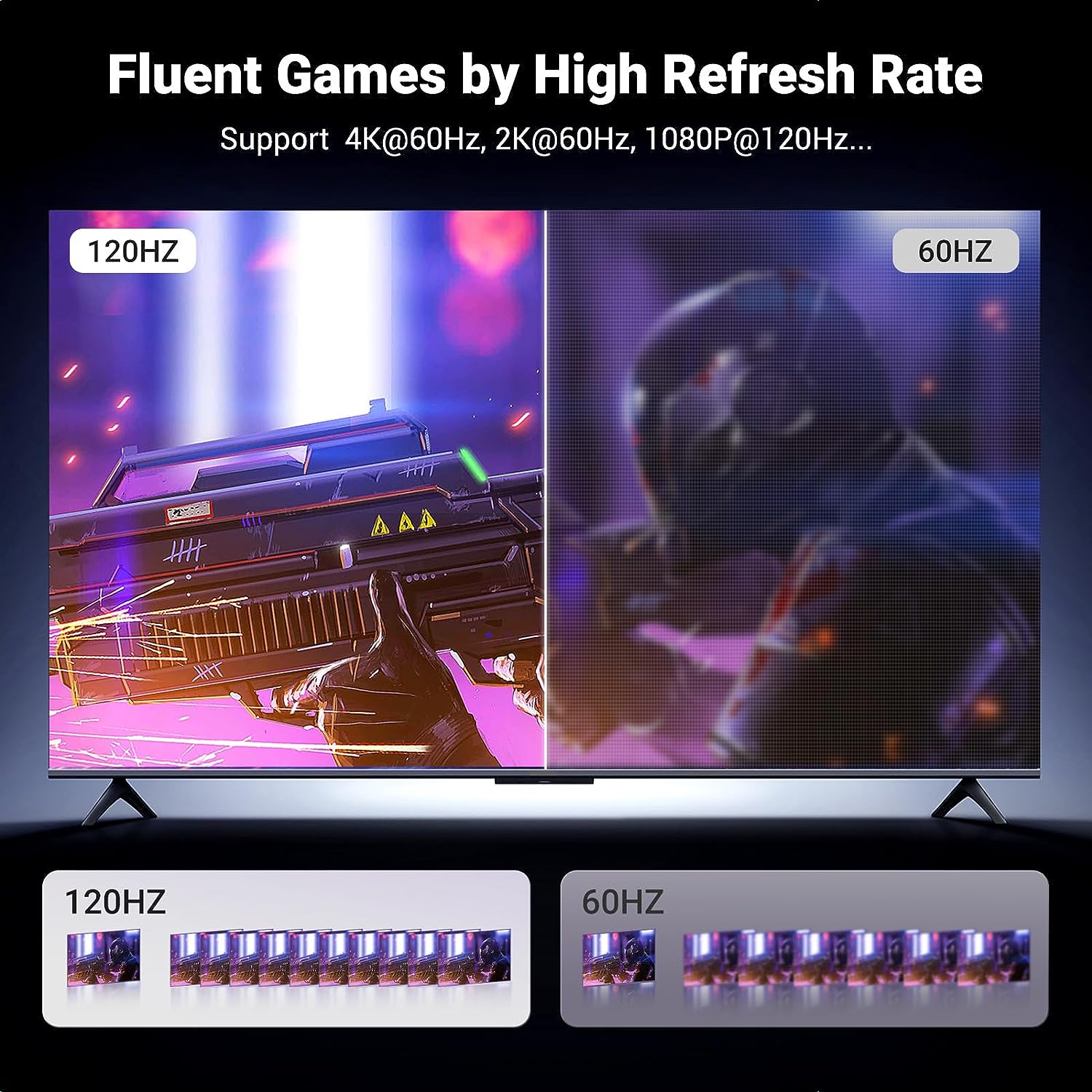 - Hỗ trợ độ phân giải lên tới 4K @ 60Hz (hỗ trợ ngược 2K @ 144Hz, 1080P @ 240Hz), mang đến cho bạn trải nghiệm màn hình 3D chân thực. Với HDR, bạn có thể thưởng thức những bức ảnh và video chân thực hơn với màu sắc tươi sáng hơn và độ tương phản cao hơn so với hình ảnh kỹ thuật số thông thường. Nó cho phép TV hoặc màn hình tạo ra hình ảnh mượt mà và chân thực, mang đến cho người dùng trải nghiệm xem và chơi game mượt mà.