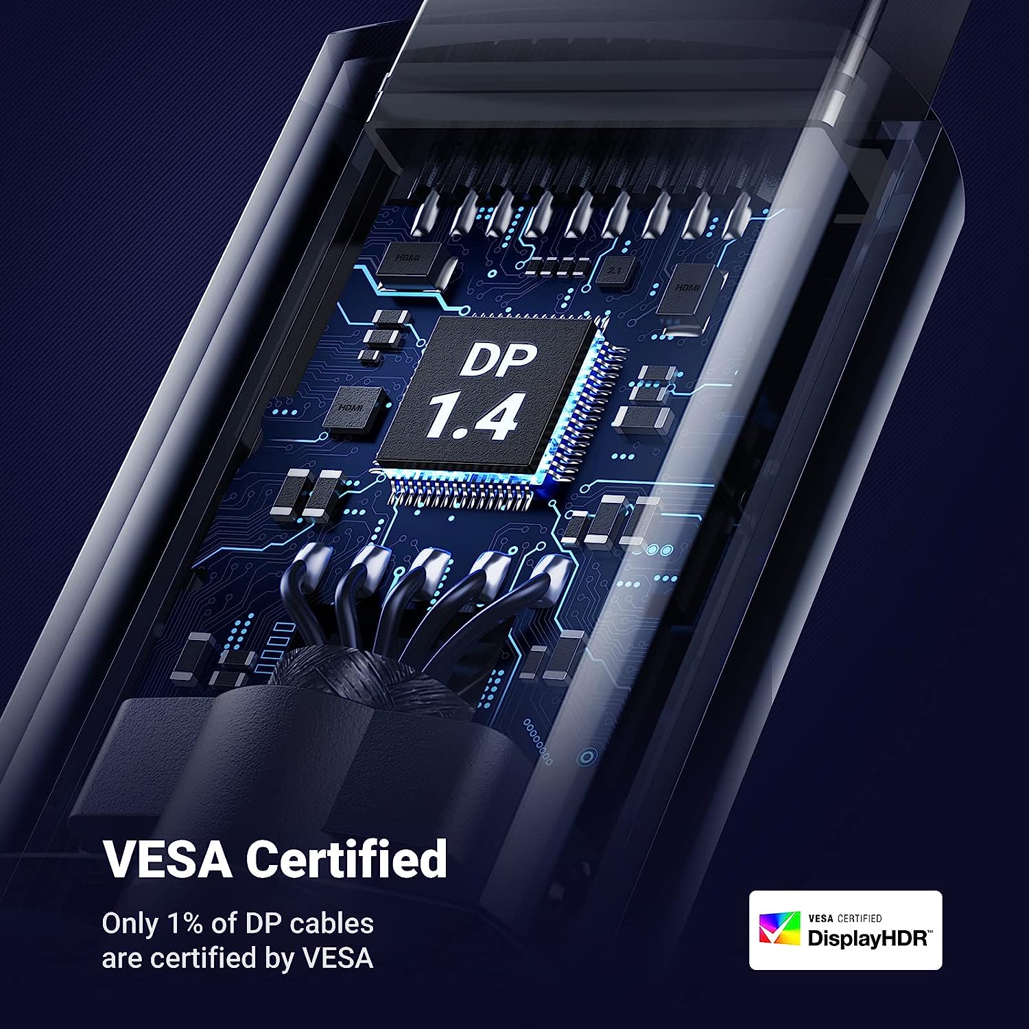 - DisplayPort 1.4 có thể truyền băng thông lên đến 32,4Gbs, cho phép xem độ phân giải cao hơn 8K ở 60Hz với HDR màu 10-bit hoặc 4K ở 144Hz. Đi kèm với công nghệ VESA’s DSC phiên bản 1.2 cho phép tỷ lệ nén lên đến 3: 1 không bị mất hình ảnh. Khả năng Truyền tải đa luồng (MST) của nó cho phép hỗ trợ độ phân giải cao của nhiều màn hình trên một giao diện hiển thị duy nhất.