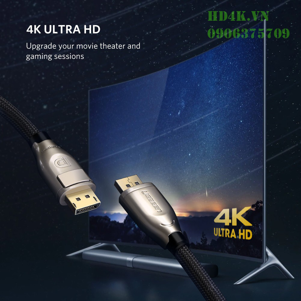 - Cáp Displayport Ugreen là giải pháp hoàn hảo để kết nối máy tính, laptop của bạn với màn hình, máy chiếu, HDTV... với chất lượng hình ảnh âm thanh sắc nét sống động, hỗ trợ độ phân giải lên đến 4K*2K 60Hz mang đến cho bạn trải nghiệm xem phim, đồ họa, chơi game hiện đại hơn bao giờ hết.