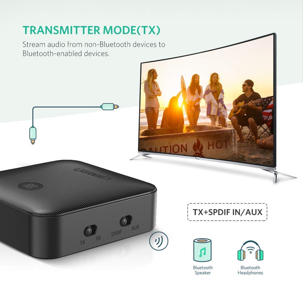 - Bộ thu phát âm thanh RX/TX ver 4.2 Ugreen 50256, hỗ trợ giao diện kết nối 3,5mm AUX, có thể được kết nối với TV, máy tính, điện thoại di động, âm thanh, bộ khuếch đại công suất và các thiết bị khác để truyền không dây qua tín hiệu Bluetooth.