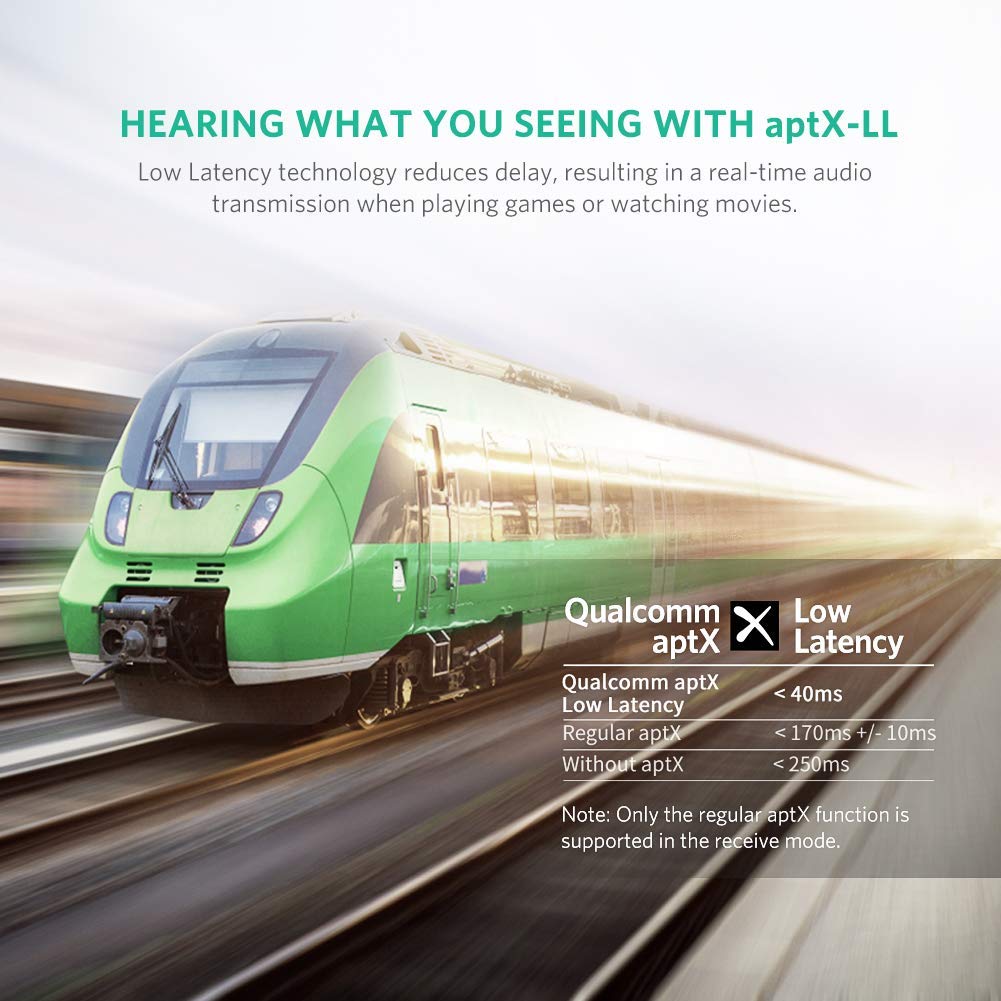 - Độ trễ thấp APTX: Bộ phát Bluetooth 4.2 hỗ trợ APTX, cho phép bạn thưởng thức âm thanh chất lượng cao và phát trực tuyến chậm. Bộ thu bluetooth đảm bảo rằng âm thanh và video hoàn toàn đồng bộ, mang đến trải nghiệm sử dụng tốt.