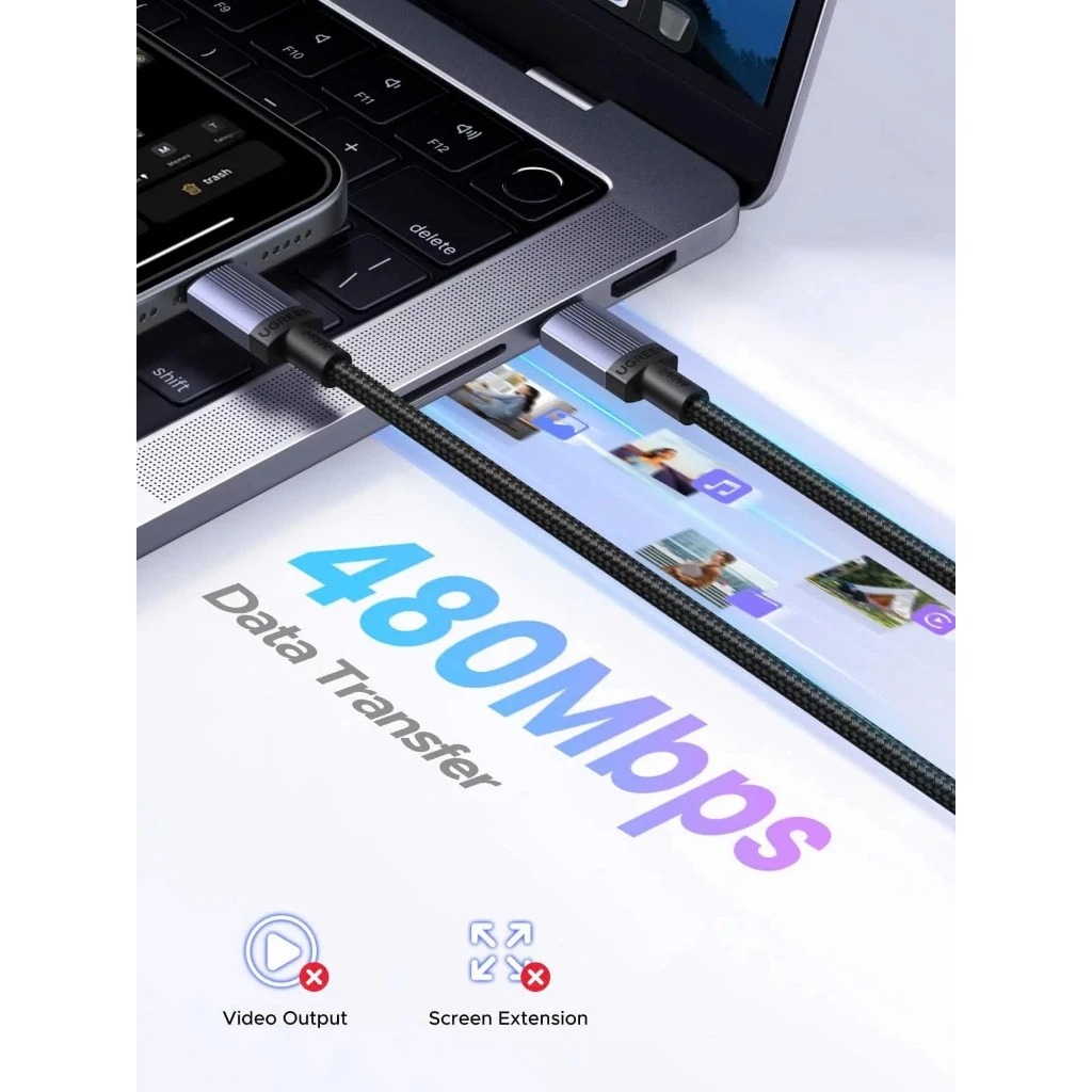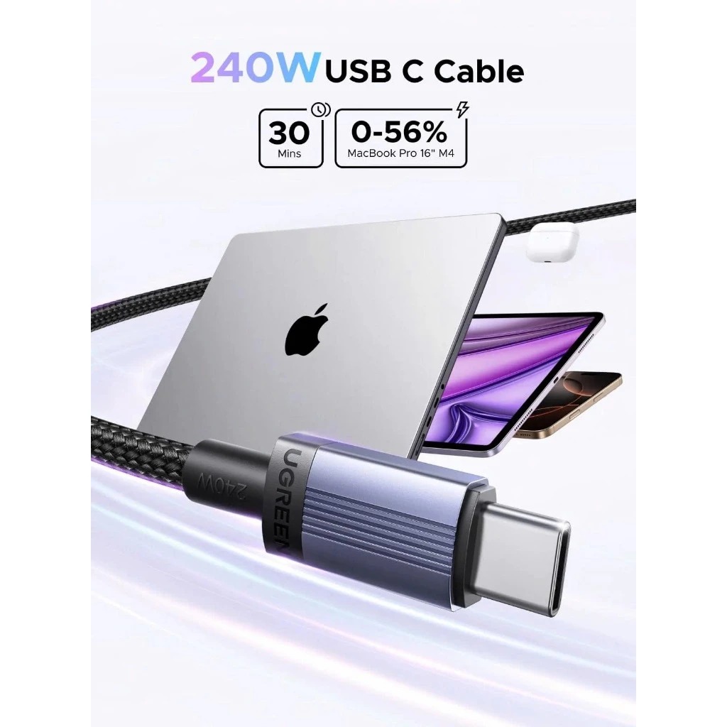 Cáp sạc nhanh USB Type-C dài 2M màu đen xám 240W Ugreen 65908 L532