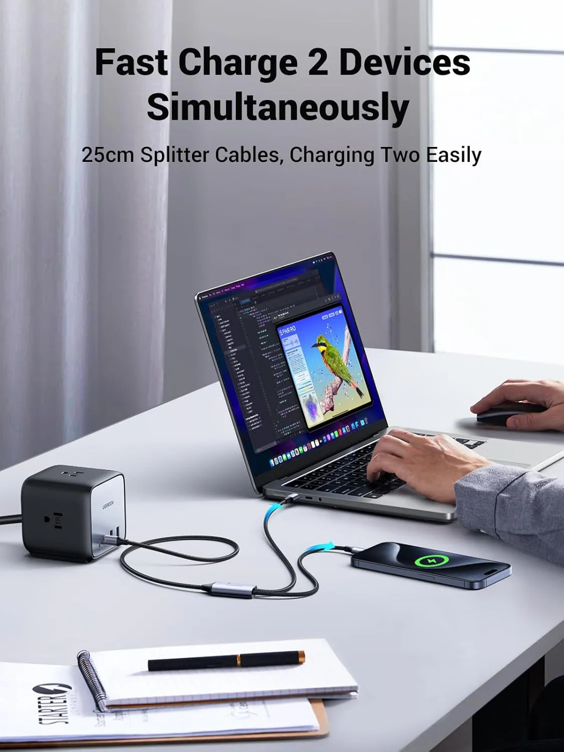 - Khả năng tương thích rộng: Cáp chia USB C sang C Y 100W UGREEN tương thích với iPhone 16 Pro Max/16 Pro/16 Plus/16, iPhone 15 Pro Max/15 Pro/15 Plus/15, Macbook Pro, Macbook, Macbook Air 2022/2021, iPad Pro 2024/2022/2021, Pixel 9/8/7 Pro, Galaxy S25/S24/S23/S22, Switch, Matebook, Chromebook, Dell XPS, Yoga 900 720, ThinkPad X1, Razer Blade Stealth, ASUS ZenBook 3, HP Spectre notebook, v.v.