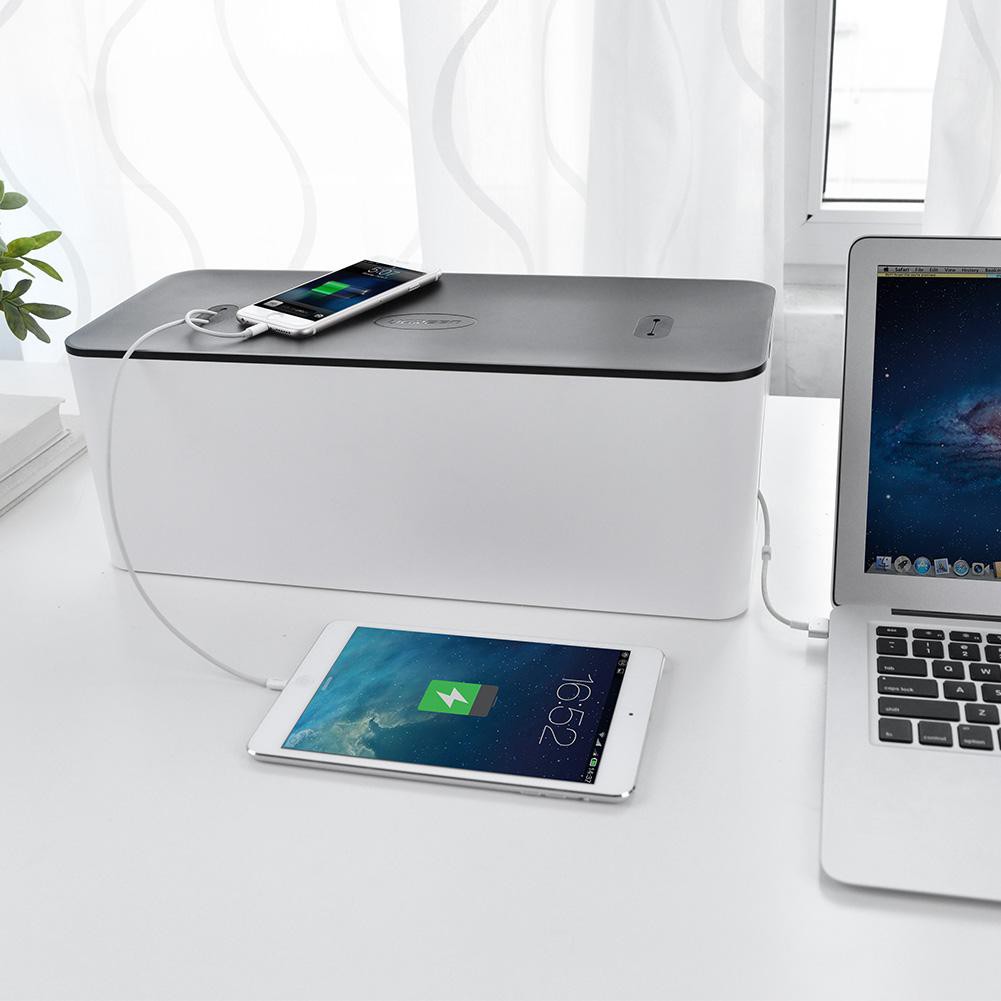 - Hộp đựng ổ cắm điện thông minh Ugreen 30398 làm bằng nhựa ABS, nhẹ nhàng, bền bỉ, phù hợp với mọi thiết kế nội thất.Sử dụng trong phòng khách, để bàn, văn phòng, nhà bếp giúp bạn an toàn không phải tiếp xúc với các ổ cắm điện một cách trực tiếp và hộp mang tính thẩm mỹ cao gọn gàng cho các kết nối điện của bạn.