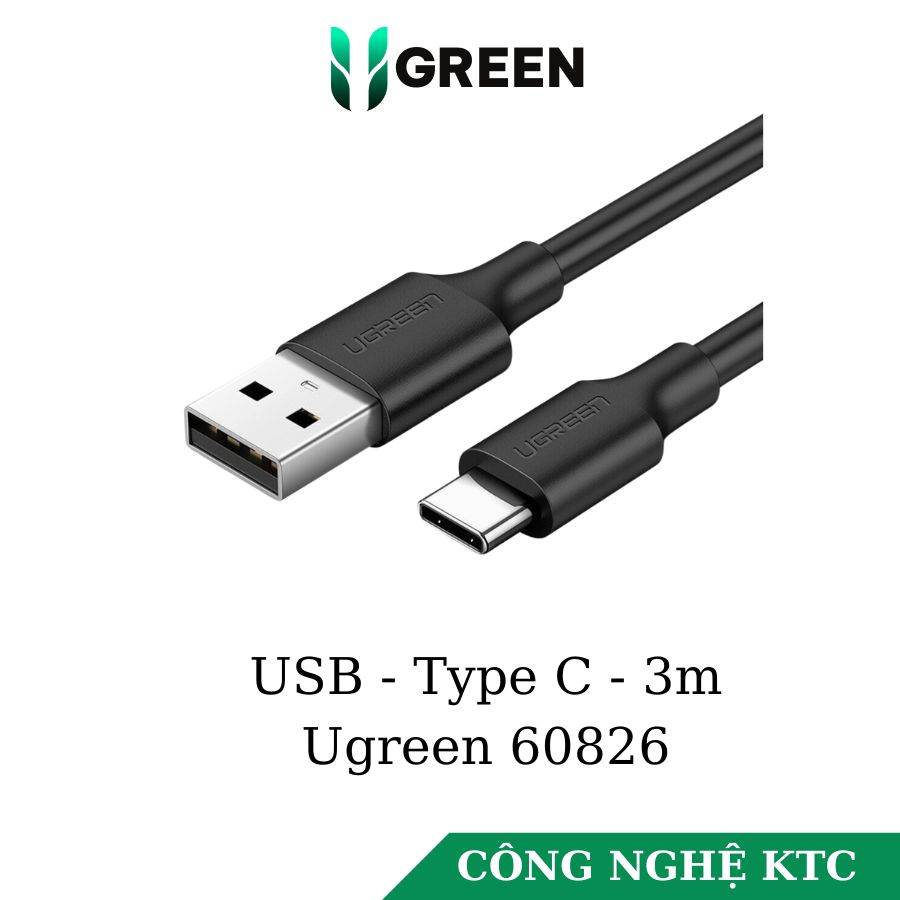 - Cáp chuyển Type C to USB 2.0 dài 3M Ugreen 60826, với thiết kế truyền thống, đơn giản, gọn nhẹ nhưng sủ dụng chất liệu nhựa PVC cao cấp, độ hoàn thiện cao. Lõi đồng nguyên chất bọc bạc chống nhiễu. Kèm với công nghệ sạc nhanh Quick Charge 3.0 nguồn ra 5V3A (max) giúp sạc thiết bị của bạn được sạc đầy một cách nhanh chóng