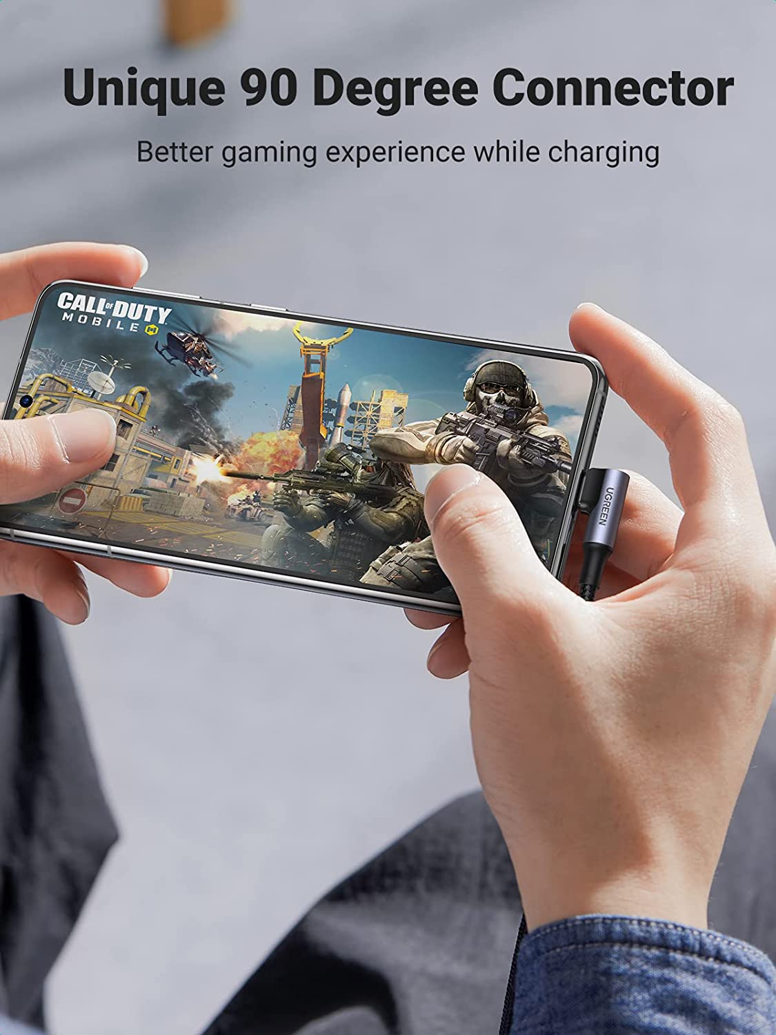 - Thiết kế độc đáo: Cáp UGREEN USB-C to USB-C với thiết kế sáng tạo 90 độ L, thuận tiện và thoải mái hơn rất nhiều khi chơi game, xem video, đọc sách điện tử khi bạn nằm trên đi văng hoặc trên giường trong khi sạc.