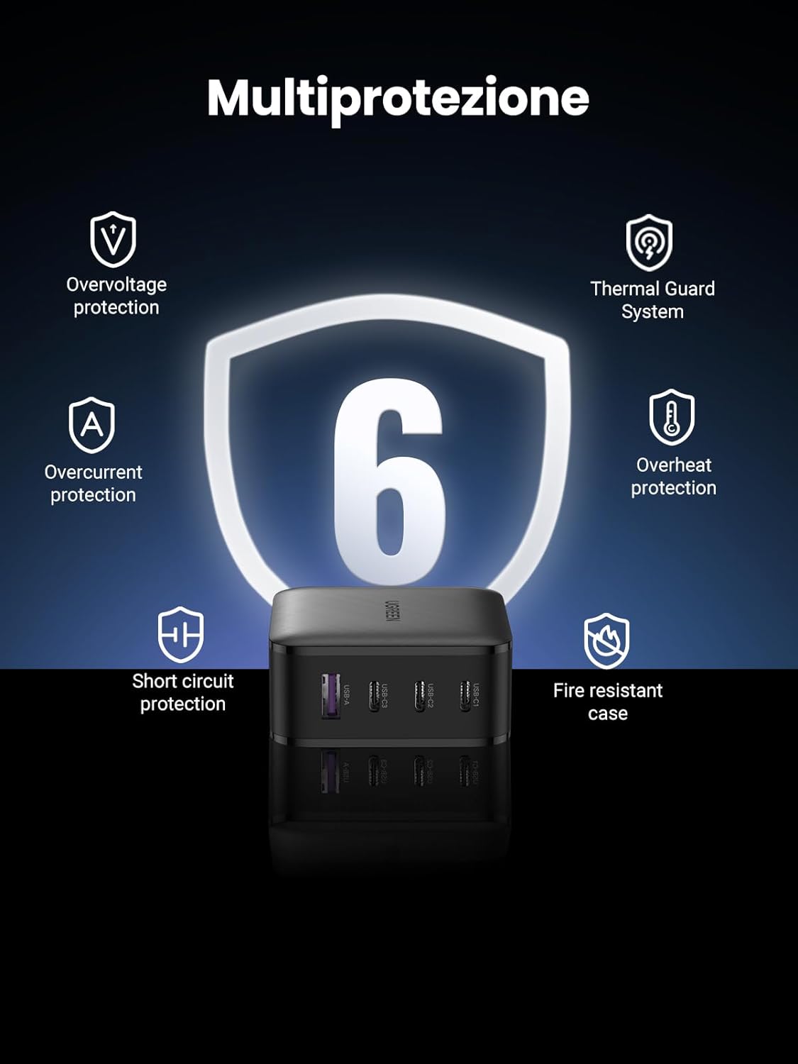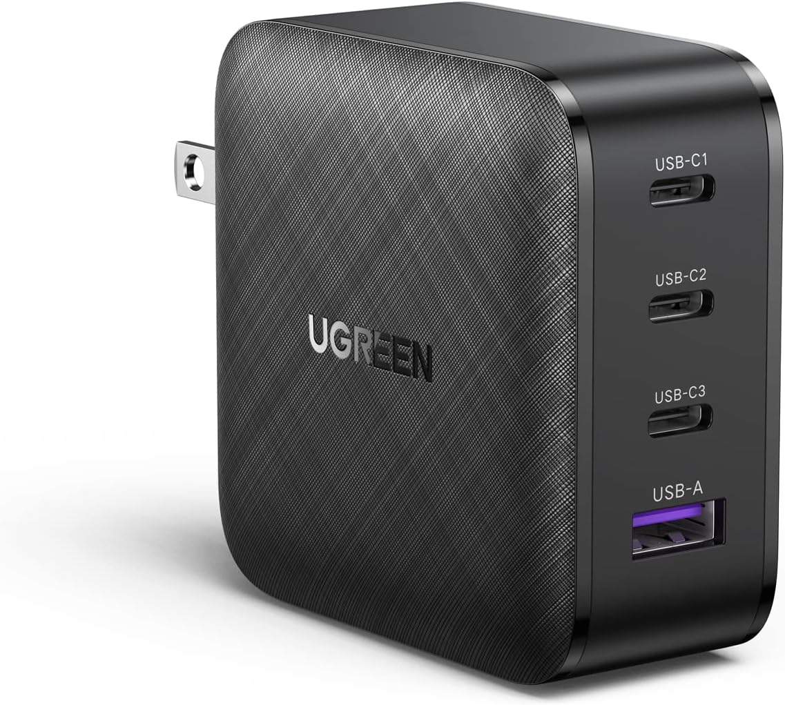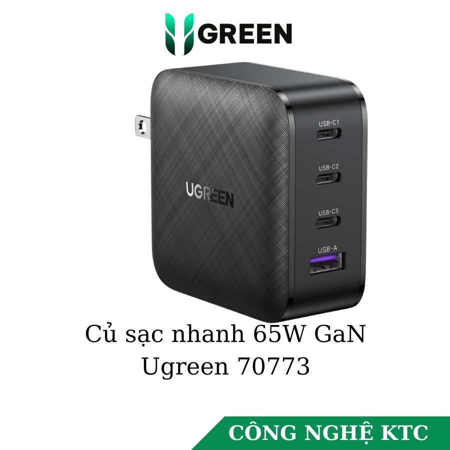 - Củ sạc nhanh 65W GaN 3 USB-C và 1 USB Type-A PD3.0 Ugreen 70773 : Ba cổng USB C và một cổng USB-A tiêu chuẩn kết nối tối đa 4 thiết bị và có thể sạc điện thoại, máy tính bảng, máy tính xách tay, v.v.—tất cả cùng lúc. Bộ đổi nguồn 4 cổng 65W có thể xử lý hầu hết mọi thứ bạn muốn sạc.