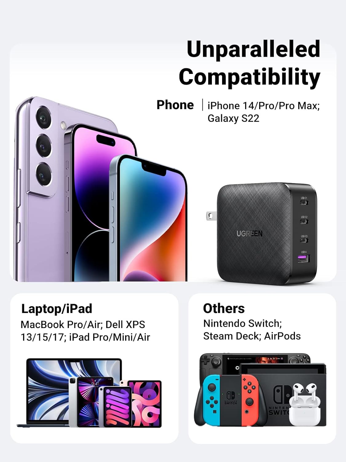 Khả năng tương thích rộng: Tương thích với MacBook Pro 13'' M1 2020, MacBook Air 2020, MacBook Pro 13'', iPad Pro, iPhone 15/14 Pro Max/Pro/14/13, Galaxy S23/S22, Switch, Steam Deck và Hơn.