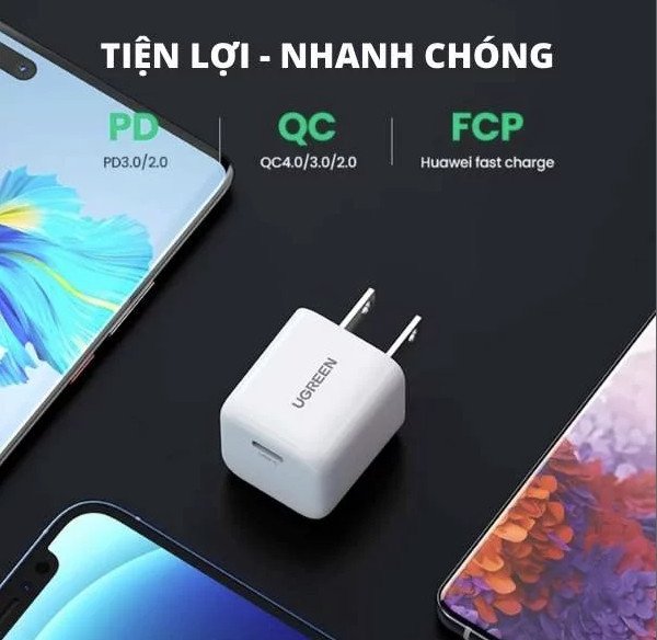 - Củ sạc nhanh Type C 20W QC 4.0 Ugreen 70572 thích hợp cho iPhone 13 mới của bạn từ 0% đến 58% chỉ trong vòng 30 phút. Nhỏ hơn 50% so với cốc sạc gắn ổ cắm tường iPhone 20W tiêu chuẩn USB C, sẽ không chiếm diện tích các cổng khác trên ổ cắm trên tường, bạn sẽ có thể sử dụng sạc nhanh mọi lúc mọi nơi.
