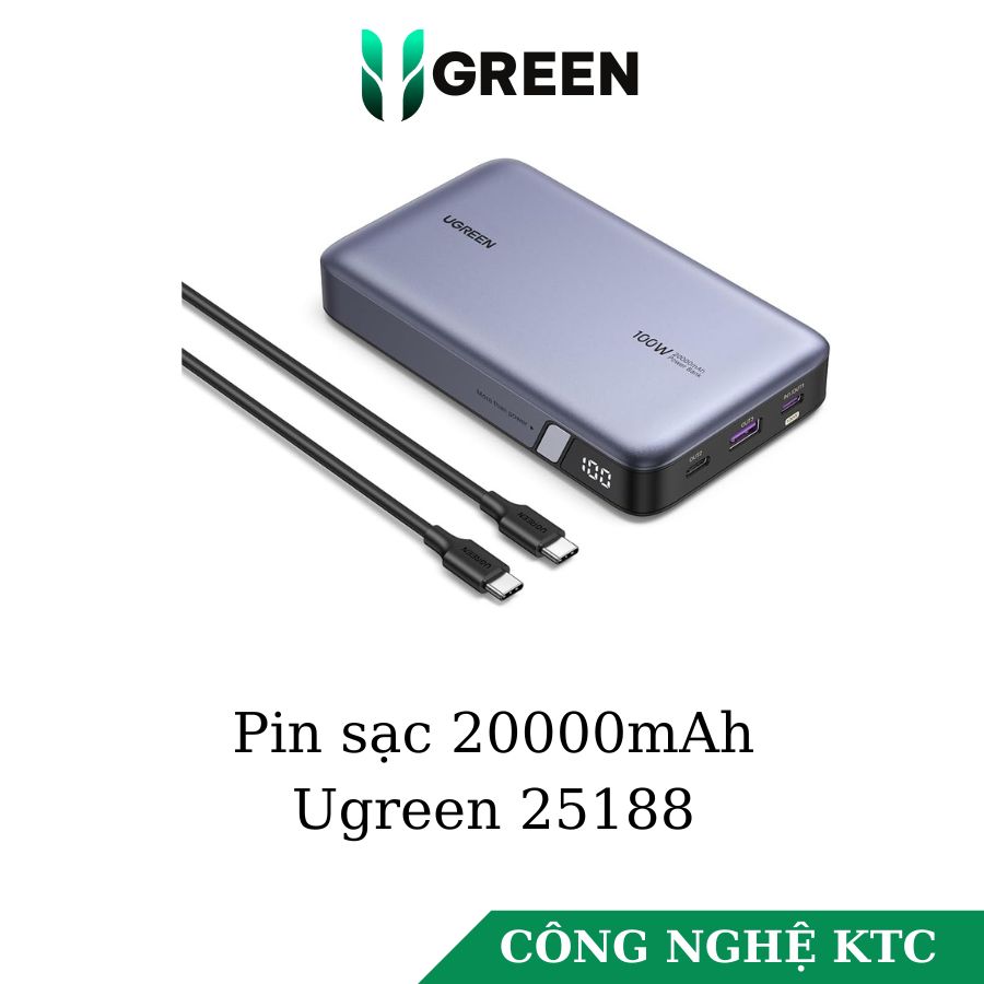 - Pin sạc dự phòng 20000mAh Ugreen 25188: Được trang bị hai cổng USB C (USB C1 100W + USB C2 30W) và một cổng USB A 22,5W, bộ sạc nhanh Power Bank 100W mạnh mẽ này có thể sạc nhanh cùng lúc 3 thiết bị. Macbook Pro 16" có thể được sạc lên 42% chỉ trong 30 phút qua OUT1 và iPhone 15 có thể sạc nhanh lên 60% trong 30 phút. Ít thời gian chờ đợi hơn.
