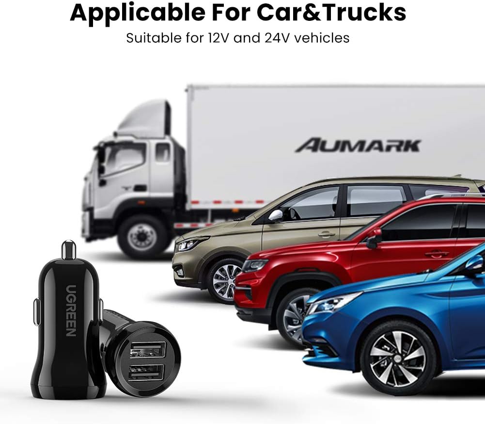 - Sạc điện thoại 2 cổng 24W dùng trên ô tô màu đen Ugreen 50875 ED018 cho phép tổng công suất nhanh nhất có thể lên tới 4,8A, xấp xỉ 24 W. Với hai đầu vào, bạn có thể sạc hai thiết bị cùng một lúc. Không chỉ lý tưởng cho điện thoại di động mà còn hoàn hảo cho máy tính bảng, thiết bị dẫn đường và các thiết bị khác.