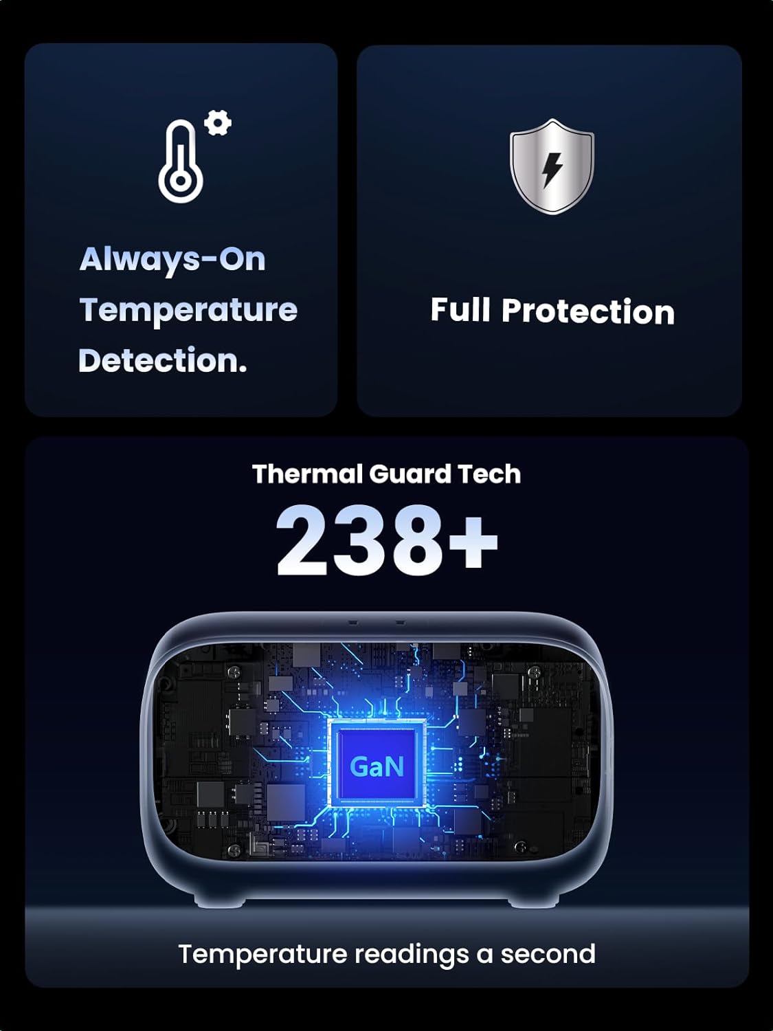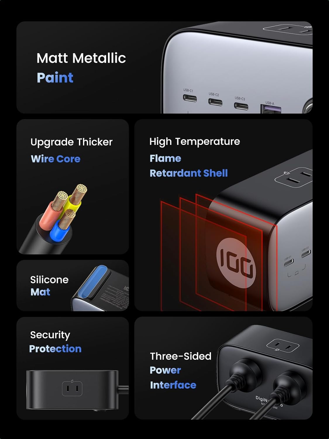 - Công nghệ GaN II: Bằng cách sử dụng chip GaN II một cách sáng tạo để cấp nguồn, Trạm sạc Ugreen DigiNest Pro cung cấp tỷ lệ chuyển đổi lên tới 95%, tản nhiệt tốt hơn và kích thước nhỏ gọn hơn.