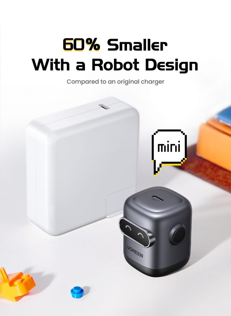 Sạc điện thoại 1 cổng USB-C GaN 30W màu đen xám tạo hình robot Ugreen 45004 X662