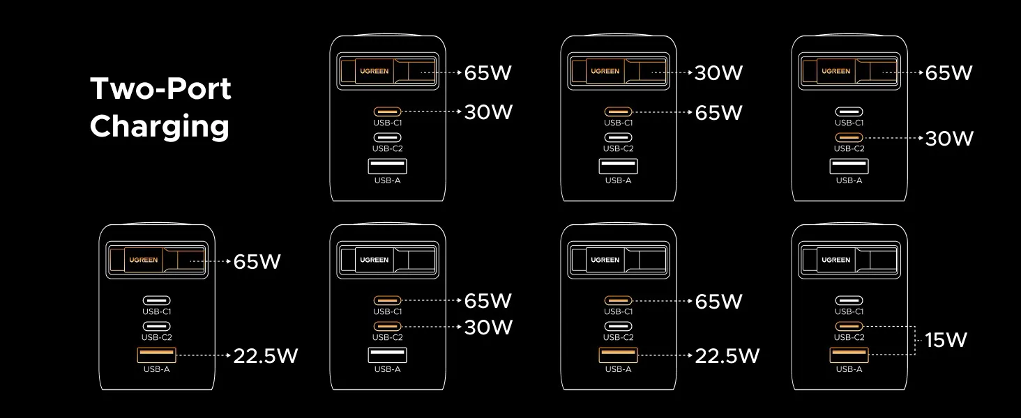 Khi chỉ dùng một cổng thì có thể đạt công suất cao nhất 100 W.