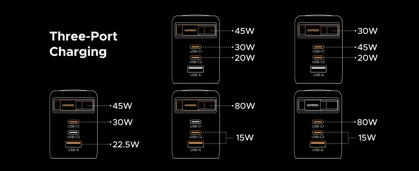 - Công suất tối đa (single port) : 100 W (khi chỉ sử dụng một cổng USB-C)