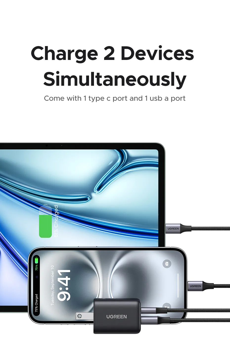 - Sạc nhanh đa thiết bị: Sử dụng được cho cả USB-C và USB-A, sạc đồng thời hai thiết bị