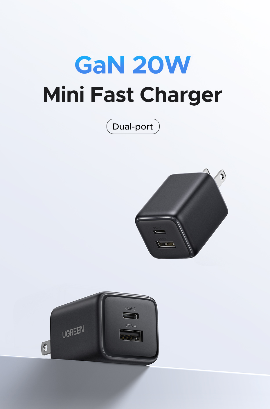 Sạc điện thoại 2 cổng USB-C và USB-A GaN 20W Ugreen 55533 X514