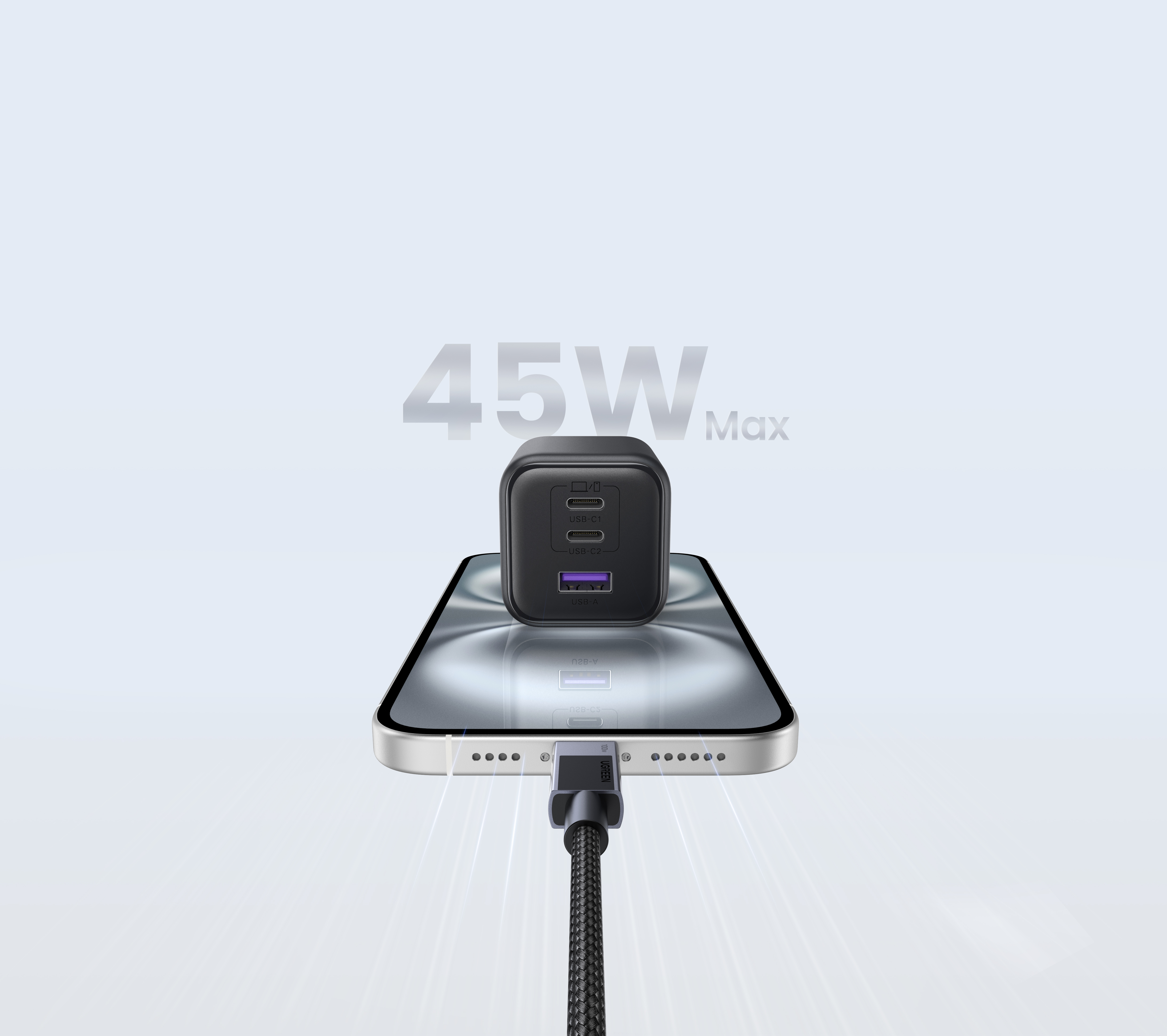 - Sạc nhanh siêu tốc: Hỗ trợ Sạc Siêu Nhanh 2.0 lên đến 45W, sạc iPhone 16/15 Pro Max hoặc Galaxy S24/S23 Ultra lên khoảng 67% chỉ trong 30 phút.