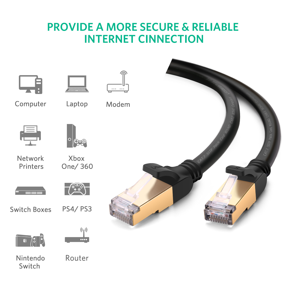 - Cáp mạng đúc sẵn CAT7 Ugreen với dải tần 600MHz hỗ trợ các kết nối mạng tốc độ lên đến 10Gbps. Cáp được bọc và thiết kế xoắn chống suy hao, xuyên nhiễu từ trường. Được sử dụng trong các thiết kế mạng đòi hỏi tốc độ cao như phòng máy chủ, phòng điều khiển trung tâm.