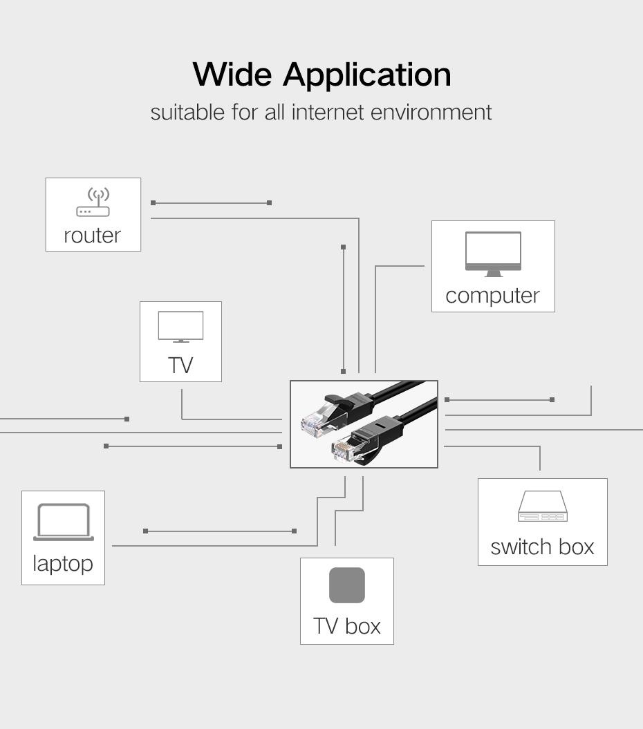 - Cáp mạng Cat6 đúc sẵn 2m Ugreen 20160 kết nối máy tính với máy in, bộ định tuyến, hộp chuyển đổi hoặc thành phần mạng khác trong Mạng cục bộ có dây (LAN) có dây. Chia sẻ tệp máy chủ, sử dụng máy in mạng, truyền trực tuyến âm thanh / video, liên kết PC thông qua chuyển đổi mạng và hơn thế nữa, với tốc độ truyền dữ liệu lên tới 1000 Mbps (1 Gbps)