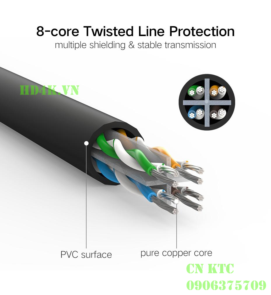 - Cable Che chắn: UTP (không được che chở cặp xoắn)
