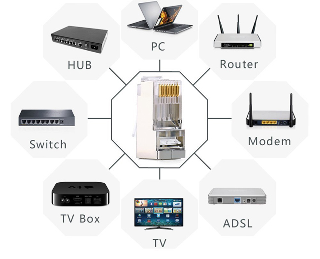 - Cat6 RJ45 8P/8C modular plugs