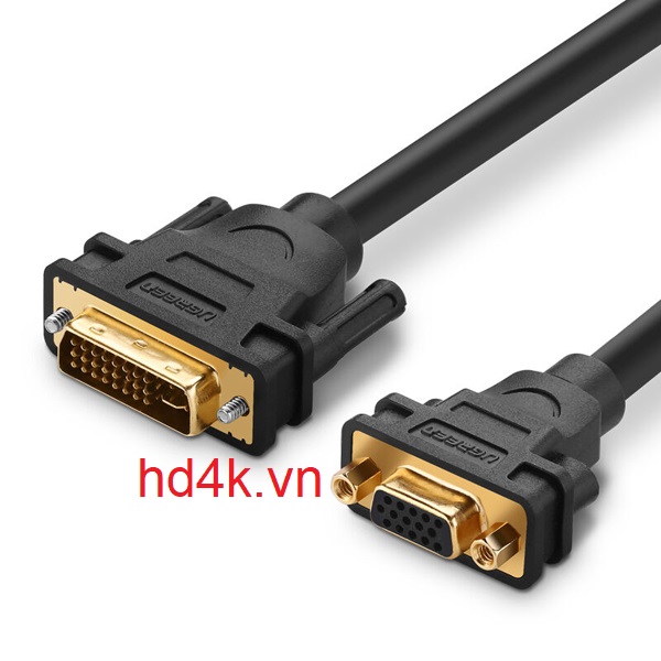 - Cáp chuyển đổi DVI-I, DVI 24+5 sang VGA Ugreen 30499 kết nối một máy tính để bàn hoặc máy tính xách tay với một DVI 24 + 5 Analog Video Card với một HDTV, Moniter, máy chiếu hoặc hiển thị với cổng VGA với độ phân giải lên đến 1080p