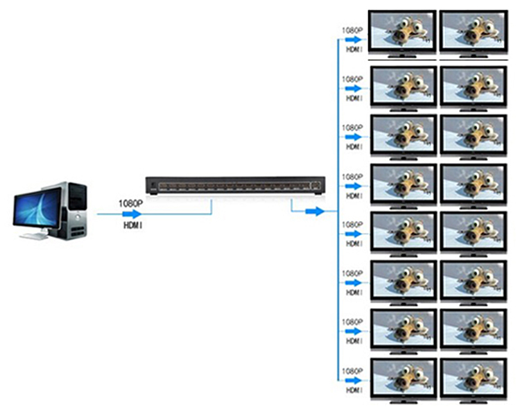 - Bộ chia HDMI 1 ra 16 hỗ trợ full HD 1080p Ugreen 40218 sử dụng 1 máy tính, đầu ghi hình camera, đầu kĩ thuật số... xuất ra 16 màn hình hoặc máy chiếu có hình ảnh giống nhau. Được sử dụng trong siêu thị, hội trường, ngân hàng, nhà máy, trung tâm điều kiển giao thông, đài truyền hình, trường học...