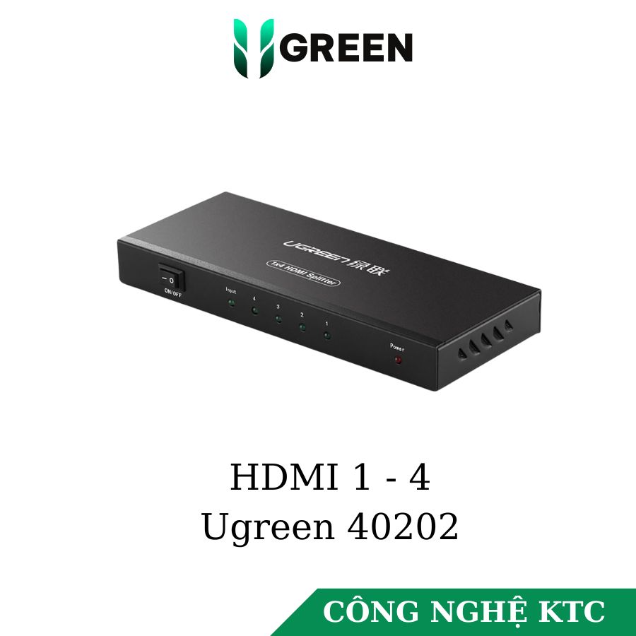 - Bộ chia HDMI 1 ra 4 Full HD Ugreen 40202, cho phép người dùng kết nối 1 nguồn phát HD duy nhất như Android TV Box, PC, Laptop, PS3,...kết nối đồng thời cùng lúc với 4 màn hình hiển thị. Cho chất lượng tín hiệu xuất ra sắc nét, ổn định.