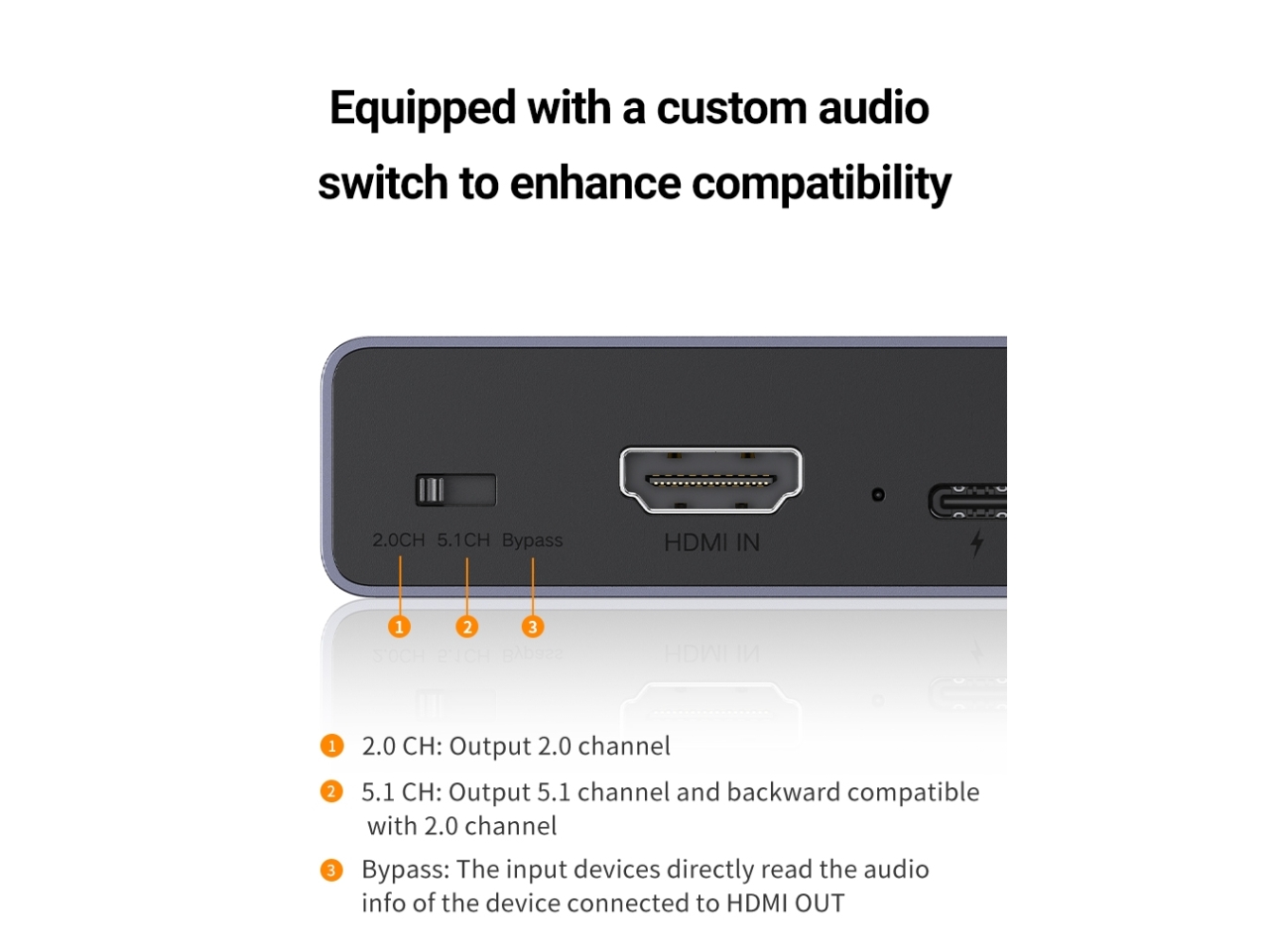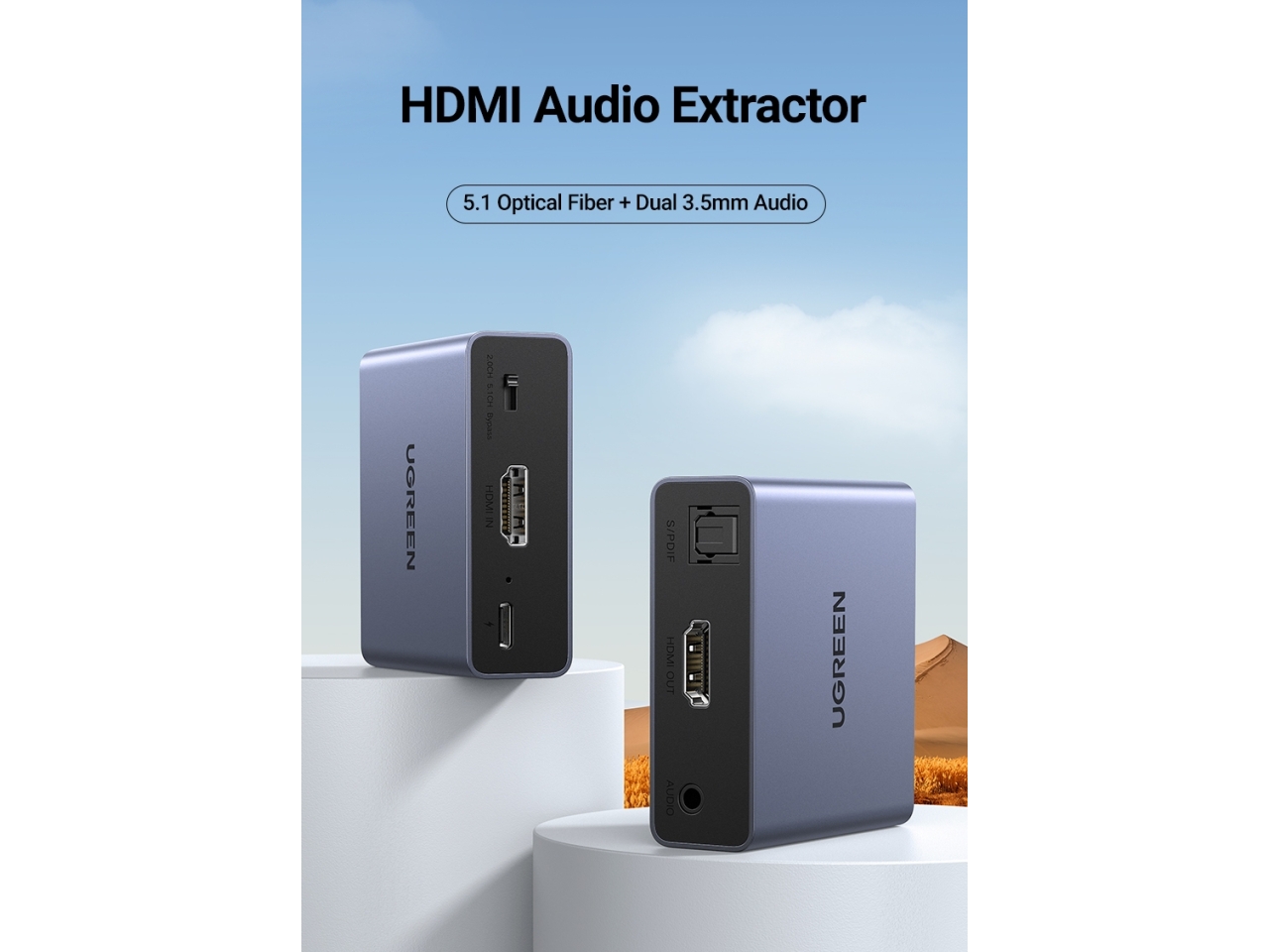 - Chuyển đổi tín hiệu từ HDMI sang HDMI +Audio và 1 cổng âm thanh Optical Analog hỗ trợ 5.1/7.1CH.