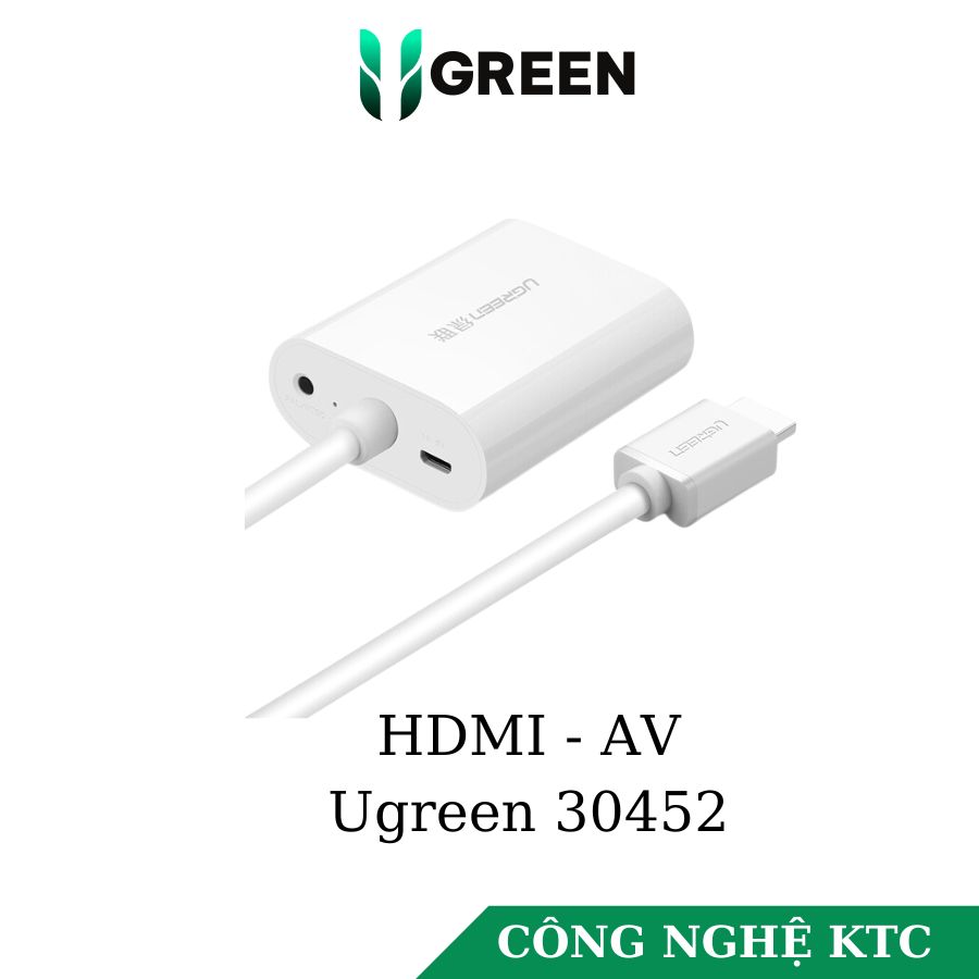 - Cáp chuyển HDMI to AV ugreen 30452 là thiết bị tiện lợi cao cấp giúp bạn kết nối máy tính, android tivi box.... đến tivi hoặc các thiết bị chiếu hỗ trợ chuẩn Analog Video với chất lượng âm thanh, hình ảnh sắc nét tuyệt vời.