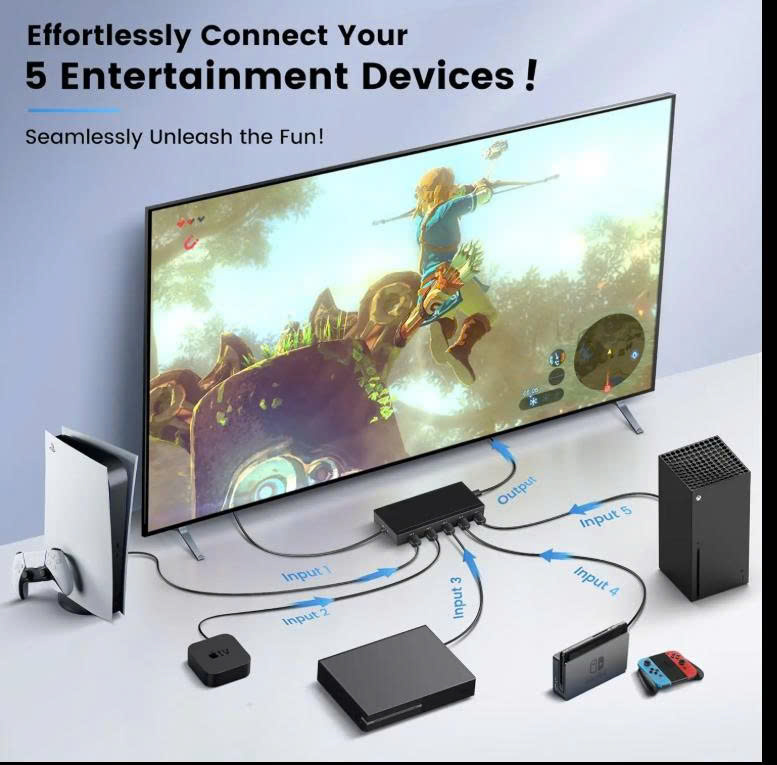 - Là thiết bị tiện ích giúp bạn dễ dàng chia sẽ kết nối hình ảnh chất lượng cao với độ phân giải 4K60Hz và âm thanh từ 3 bộ phát 4K như đầu đĩa, tv box, apple tv, đầu thu camera,... dùng chung 1 màn hình duy nhất, chuyển đổi kênh phát dễ dàng với 1 nút bấm hoặc sử dụng remote điều khiển từ xa tiện lợi. Cung cấp giải pháp hoàn hảo cho mọi nhu cầu giải trí, trình chiếu yêu cầu độ nét cao.