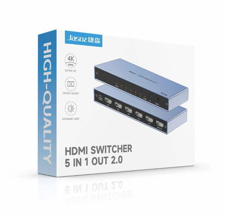 Bộ chuyển mạch HDMI 2.0 5 vào 1 ra hỗ trợ 4K Jasoz T-G180