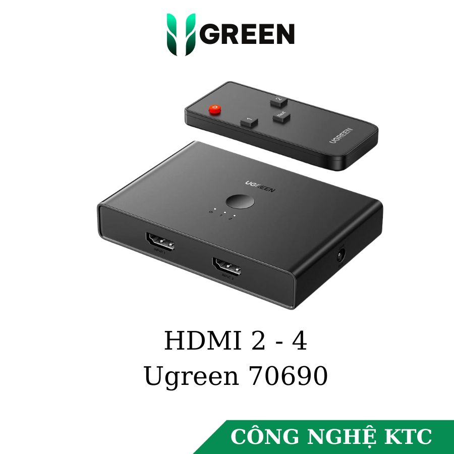 - Bộ Gộp HDMI 2 vào 4 ra chuẩn 2.0 4K@60Hz Ugreen 70690 mang đến cho bạn nhiều sự lựa chọn hơn để kết nối với HDTV hoặc màn hình. Dễ dàng kết nối đồng thời hai nguồn HDMI với một Ultra HDTV và chuyển tín hiệu đầu vào qua điều khiển từ xa hồng ngoại sang bộ chuyển HDMI 4K, cũng hỗ trợ trích xuất âm thanh từ nguồn HDMI và xuất ra loa