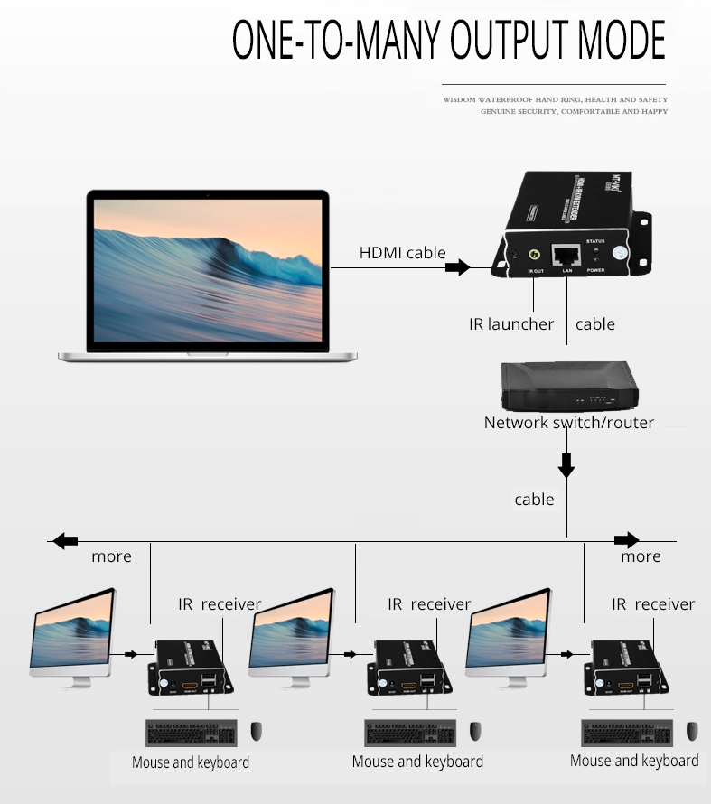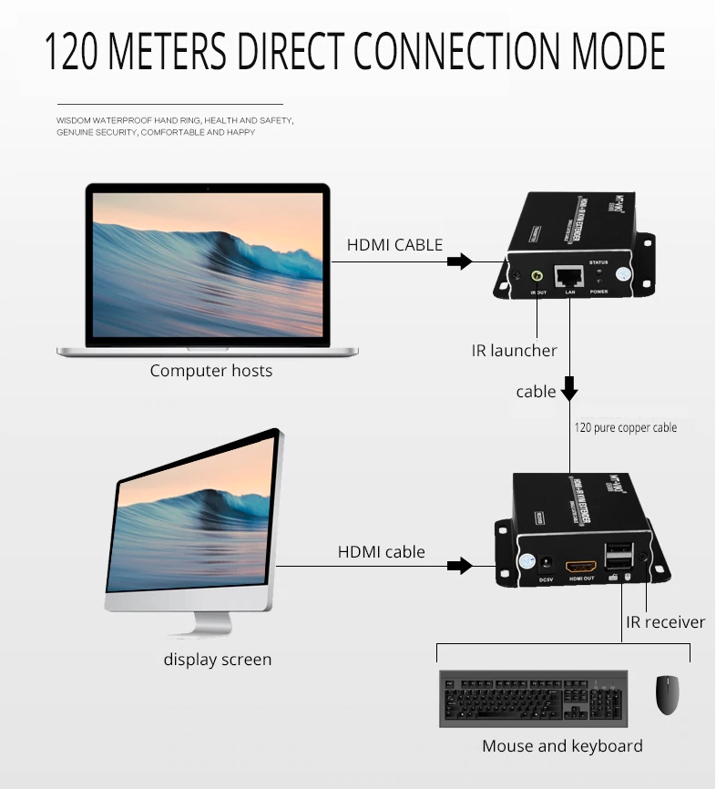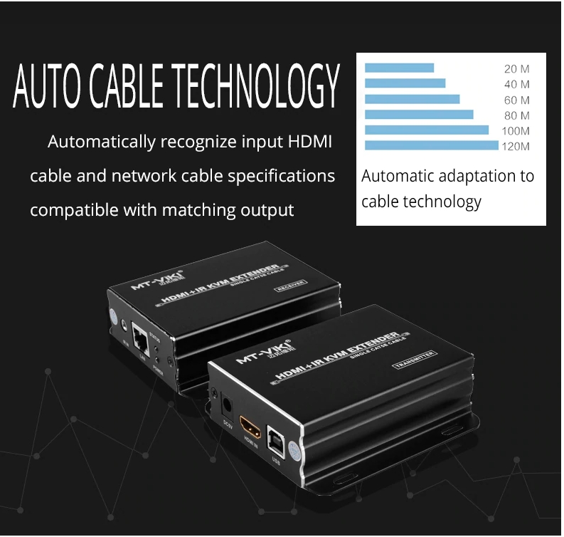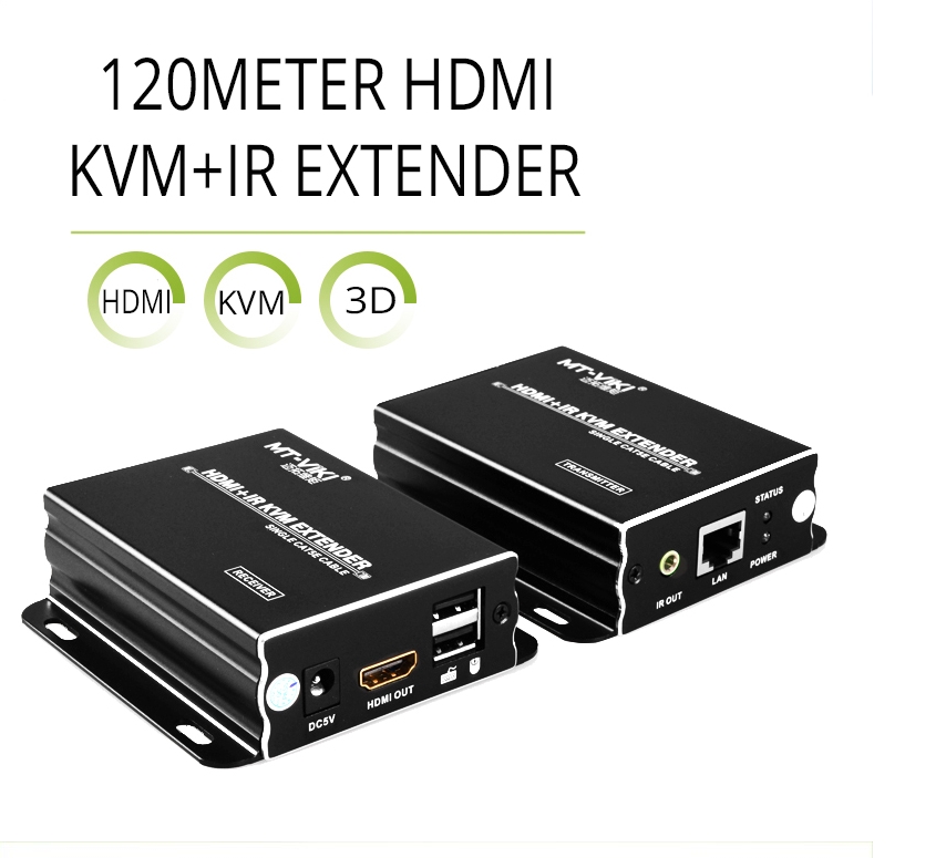 - Bộ mở rộng HDMI KVM dài 120 mét áp dụng bộ mở rộng mạng HDMI với công nghệ cáp mạng tự động, có thể tự động nhận dạng các thông số kỹ thuật của cáp HDMI và cáp mạng đầu vào và cũng phù hợp với hiệu ứng hiển thị đầu ra.