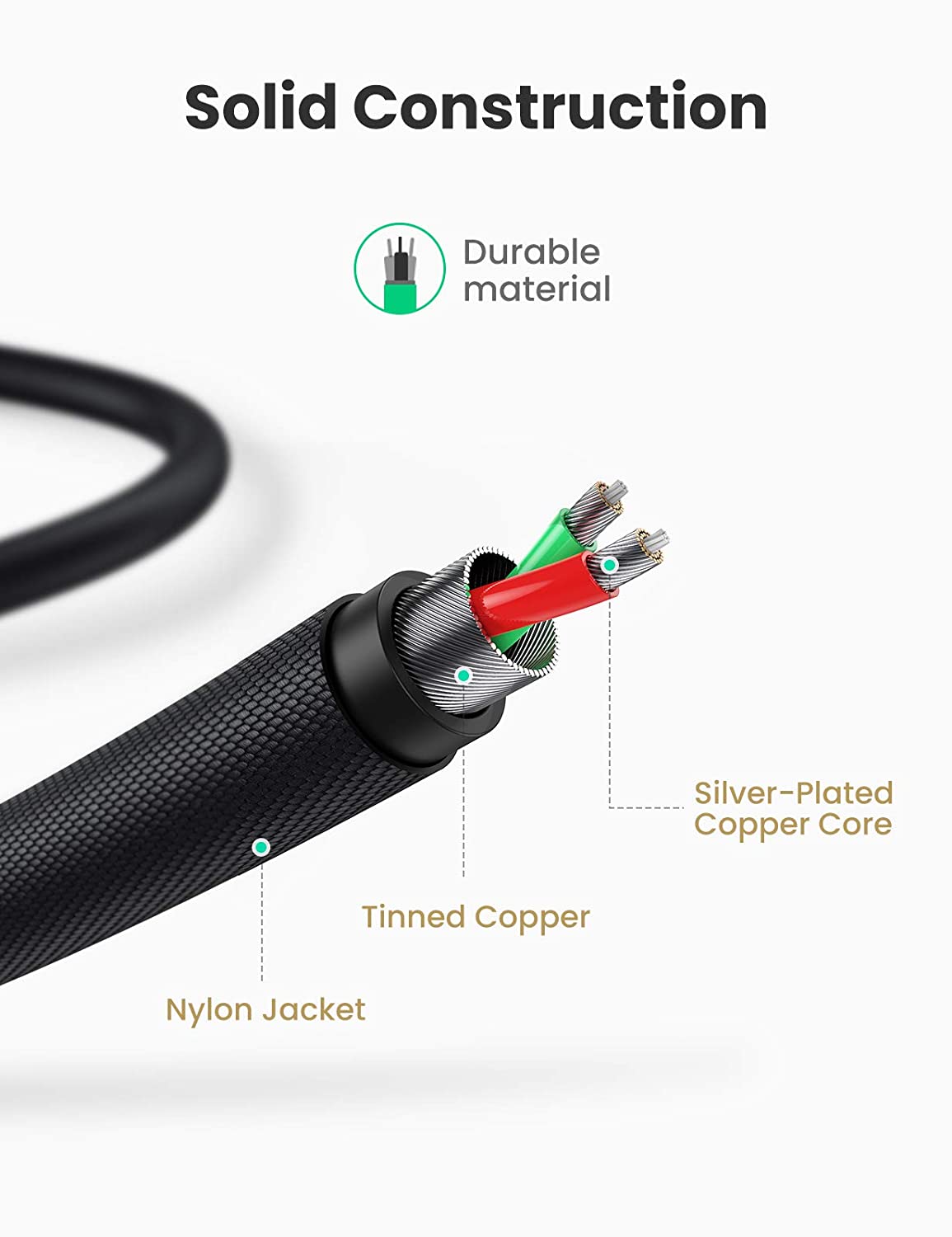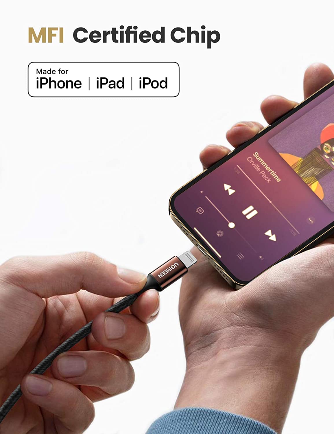 - Cáp chuyển Lighting sang RCA dài 2m Ugreen 40904 trang bị bện bằng đồng và tấm chắn bằng nhôm Mylar, cáp RCA kép này có thể truyền nhạc giữa các thiết bị có cổng Lightning và các thiết bị 2RCA (Đỏ và Trắng), chẳng hạn như iPhone, iPod, iPad, Bộ khuếch đại, Loa, TV, Đầu thu Radio, DVD, AV trên xe hơi. Cáp giắc cắm Lightning sang RCA sẽ mang đến cho bạn trải nghiệm âm thanh nổi tuyệt vời