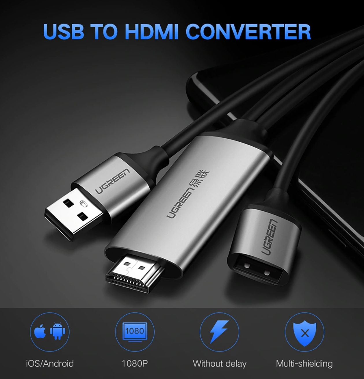 - Cáp chuyển từ điện thoại ra tivi cổng HDMI ugreen 50291 thiết kế cáp sang trọng tinh tế với lớp vỏ hợp kim nhôm bền bỉ, chất liệu lõi đồng nguyên chất. Và nó thực sự là phụ kiện đồ chơi công nghệ cao cấp không thể thiếu trong bộ sưu tập của bạn.