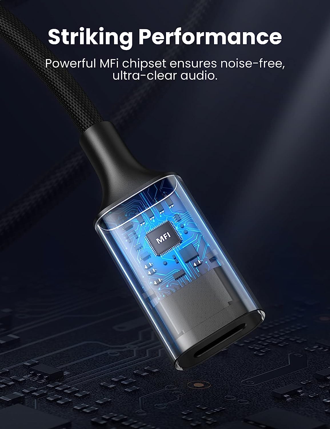 - Dây Lightning bện nylon & Vỏ nhôm, tạo nên một sợi cáp mềm mại và chắc chắn với độ dẻo dai vượt trội. Hơn 10000 bài kiểm tra uốn cong và hơn 10000 bài kiểm tra cắm-rút đảm bảo độ bền của bộ chuyển đổi giắc cắm tai nghe chống sét này.