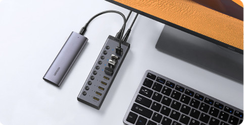 - Bộ chia USB 3.0 7 port Ugreen 30778 được thiết kế sang trọng, tinh tế với thiết kế hình khối chữ nhật nhỏ gọn, dàn đèn led báo tín hiệu và nút công tắt nguồn tiện lợi.