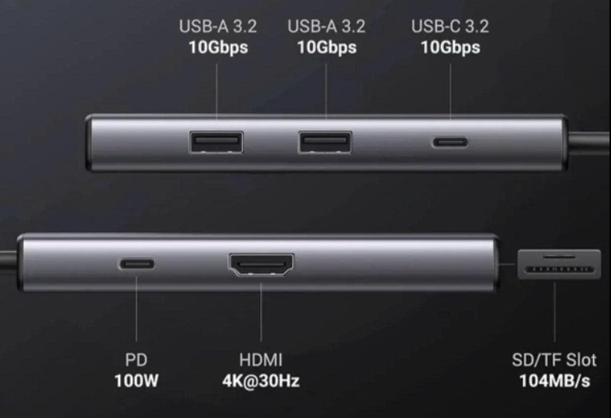 - Output: 2*USB 3.2 A+ USB-C 3.2+HDMI+SD/TF+PD